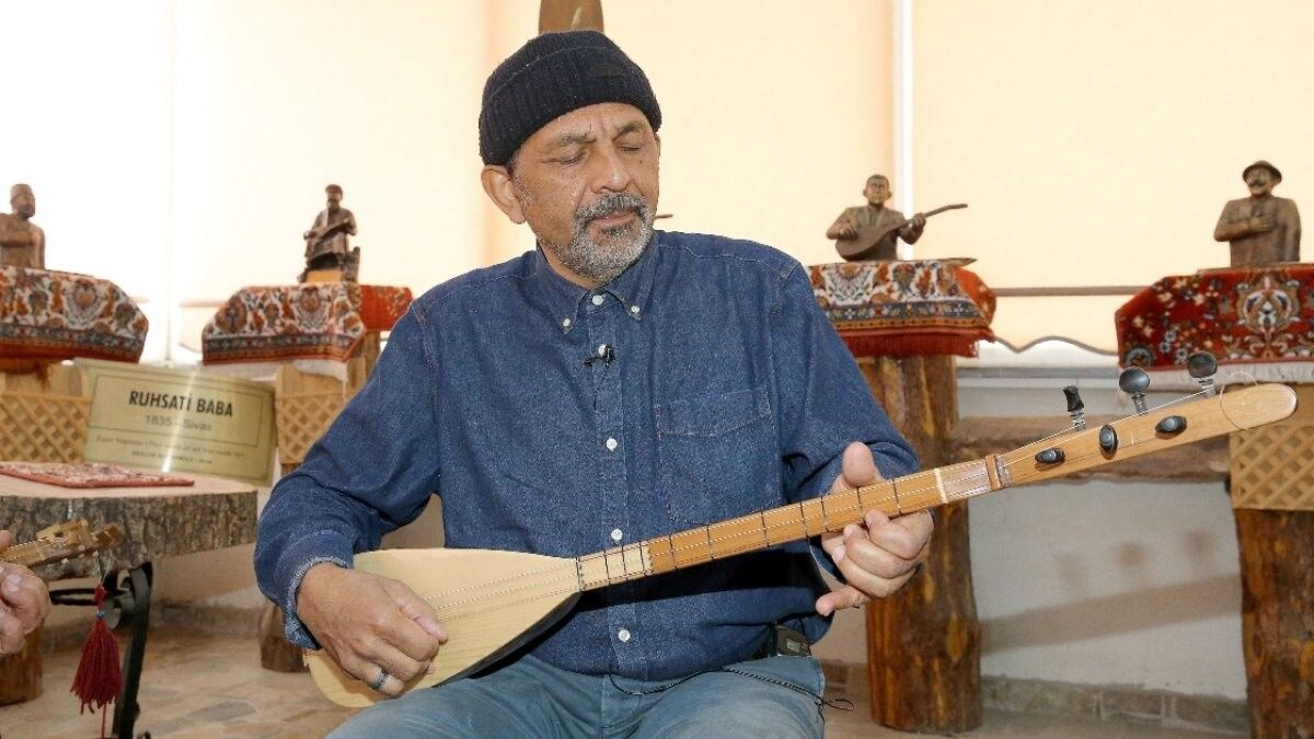 Caz sanatçısı Tyson, İyidoğan'ın atölyede oluşturduğu "Aşıklar Müzesi"nde Aşık Veysel'in eserlerini Türkçe ve İngilizce yorumladı.