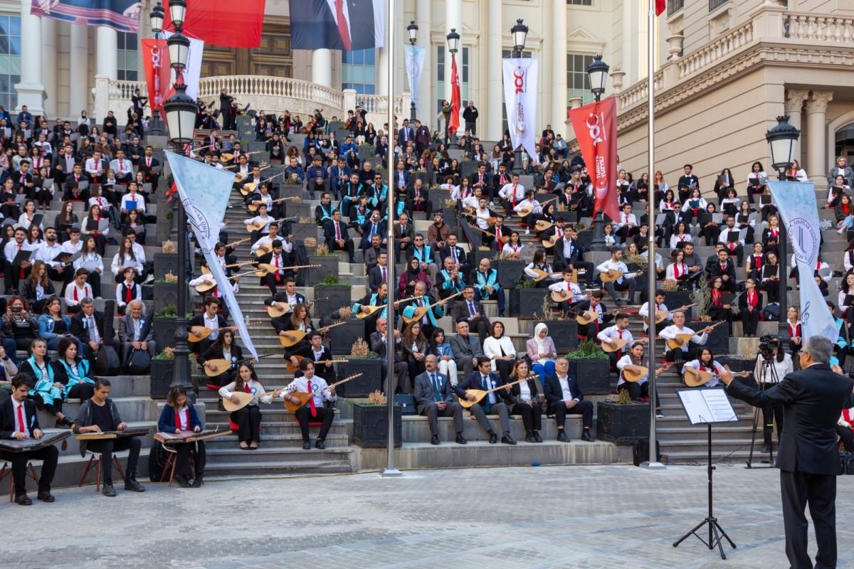 Ankara Müzik ve Güzel Sanatlar Üniversitesi'nin Yunus Emre Sevgi Meydanı'nda gerçekleşen açılış töreninde üniversitenin akademik ve idari personeli ile öğrencilerinin yanı sıra Ankara Güzel Sanatlar Lisesi, Mimar Sinan Güzel Sanatlar Lisesi öğrencileri ve eğitmenleri, Ozan-Der Halk Ozanları Kültür Derneği ozanları yer aldı. Türkiye Cumhuriyeti’nin Yüzüncü yılı dolayısıyla oluşturulan 100 kişilik koro, “100 Saz 100 Sözle Dostlar Seni Unutmadı” teması ile Aşık Veysel türkülerini seslendirdi.
