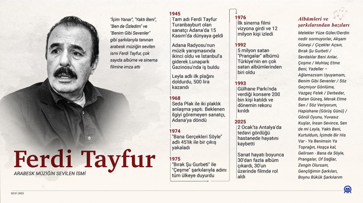 Türk şarkıcı, besteci, söz yazarı ve sinema oyuncusu Ferdi Tayfur, 2 Ocak 2025'teki ölümünün ardından kendi şarkısının adındaki gibi "Hatıran Yeter Konseri" ile anılıyor.