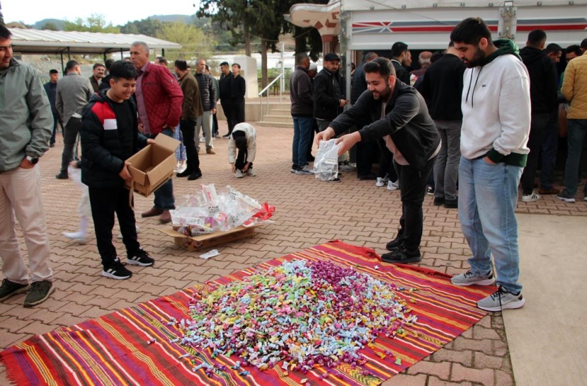 Seyyar marketlerden alınan şekerler, cami bahçesinde bir kilim üzerine seriliyor. Ardından, imamın duasının ardından, gençler bu şekerleri küçük ölçeklerle çocuklara eşit şekilde dağıtıyor. Mahallede yaşayan yaşlıların, gelenek hakkında yaklaşık 150 yıllık bir geçmişe sahip olduğunu söylediği bu uygulama, bu yıl da devam etti.