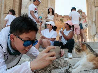 Efes'in kedileri turistlerin objektiflerinde de yerini alıyor. Geziyi ölümsüzleştirmek isteyen ziyaretçiler, kedilerle bol bol fotoğraf çektiriyor.