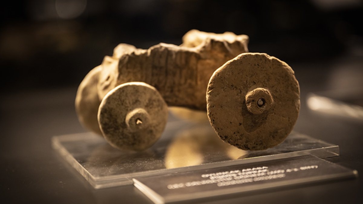 Çocukluğumuzda tel bağlayıp, ip bağlayıp çekerek kullandığımız arabaların antik çağdaki örneklerini görmekteyiz. Tabii antik çağdaki bu örnekler kültürün de ne kadar üst düzeyde olduğunu yansıtmakta. Çünkü sadece sıradan bir oyuncak araba değil üzerinde pek çok kompozisyonu, anlamı, manayı taşıyan eserlerden bahsediyoruz.