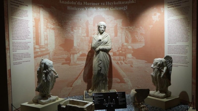 Heykele, ABD ile Danimarka'dan Türkiye'ye iadesi sağlanan 5 heykel başı da eşlik ediyor. Türkiye'nin doğusundan batısına, kuzeyinden güneyine uzanan 90 kazı alanından getirilen ve neredeyse tamamı ilk kez sergilenen eserler, vatandaşları 12 bin yıl öncesine uzanan bir yolculuğa çıkarıyor.