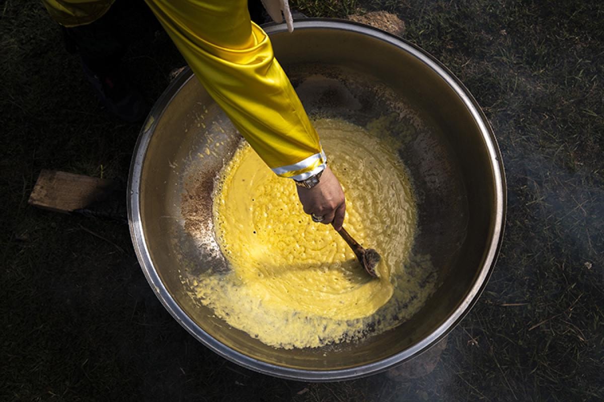 Hazırlıklarını evde tamamlayan oyuncular, akordeon eşliğinde köy halkının yanına çıkarak önce dans ediyor, ardından ev ev dolaşarak kaymak, mısır unu ve tuz gibi yiyecekler topluyor. Ev sahipleri malzeme vermek istemediğinde ise oyun gereği korkutularak ikna ediliyor.