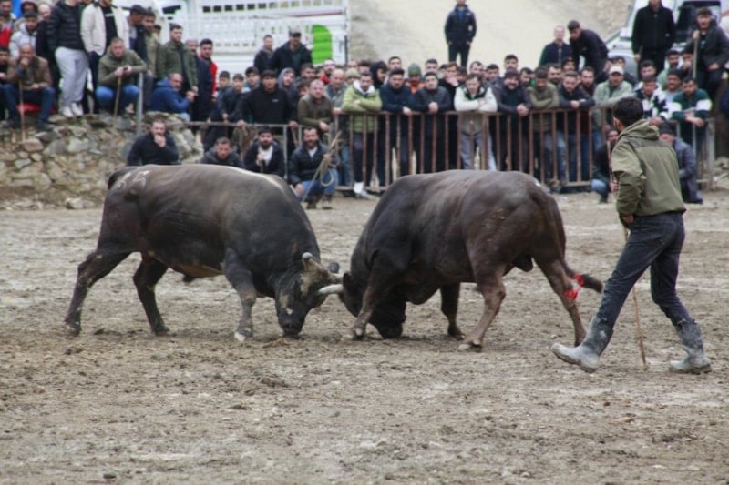 Yusufeli ilçesine bağlı Sarıgöl köyünde düzenlenen 31. boğa güreşleriyle sezon açıldı. 104 boğanın kıyasıya mücadele ettiği organizasyonda binlerce kişi soğuk havaya rağmen tribünleri doldurdu.