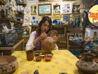 Bu merkezde Hasan Dağı ve Erciyes Dağı'ndan çıkan yanardağ tüflerinden elde ettikleri kırmızı toprakla çini desenlerini buluşturduklarını ifade eden Nida Olçar, "Babam çini desenlerinin ülkemizin bir çok yerinde elde edilen çanak çömlek ve diğer ürünlerle buluşmasını isterdi. Zaten son 10 yıldır da Tokat'ta, Konya'da, Çanakkale'de açılan atölyelerde çini işlemeciliği devam ediyor. Biz de son 3 yıldır Kapadokya bölgesinde bir sanat galerisi işletmekteyiz. Bölgeye has kırmızı toprakla çini desenlerini buluşturarak özel tasarımlar ortaya çıkarıyoruz." dedi.