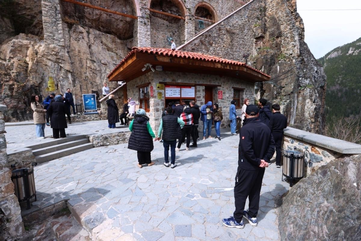 Sümela Manastırı, bayram tatilinde ziyaretçilerine doyumsuz ilkbahar manzarası sundu.