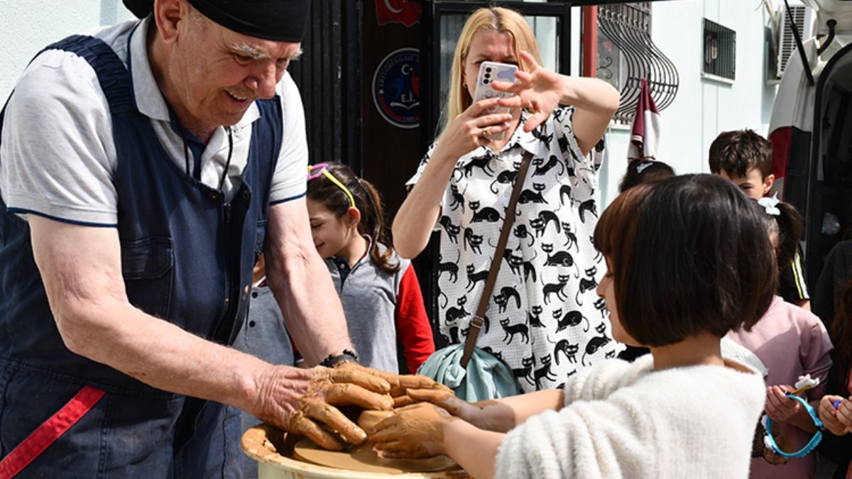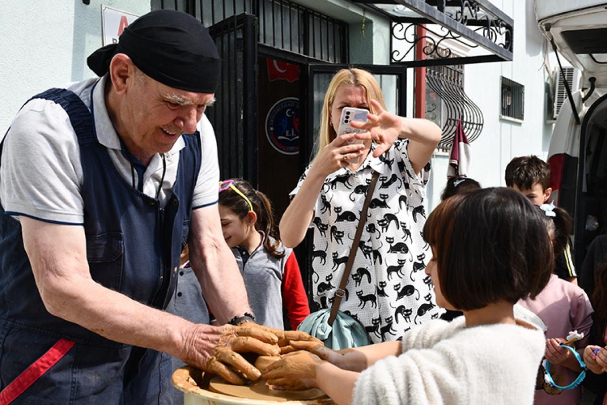Salim Yaşar’ın konuk olduğu Ertuğrulgazi İlkokulu’nun Müdürü Yılmaz Benlice de çömlekçiliğin geçmişin izlerini bugüne taşıyan önemli bir el sanatı olduğunu belirterek, çocukların bu tür etkinliklerde büyük mutluluk yaşadığını ifade etti.