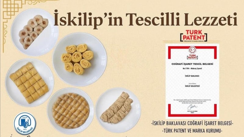 İskilip Belediyesi'nden yapılan açıklamada, ilçede dini bayramlar ve özel günlerde evlerde kadınlar tarafından hazırlanan, ticari olmayan geleneksel İskilip baklavası için Türk Patent ve Marka Kurumu'na (TÜRKPATENT) yapılan başvurunun sonuçlandığı duyuruldu.