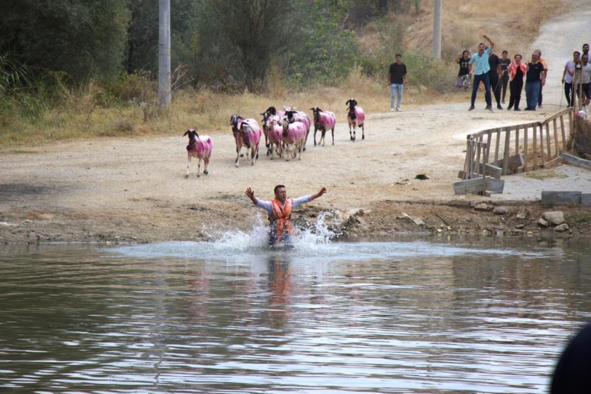 Somut Olmayan Kültürel Miras Listesi'nde yer alan Sudan Koyun Geçirme Yarışması’nda 34 çoban, sürü başı koçlarıyla koyunlarını Menderes Nehri'nin sularına atlatarak karşıya geçirmeye çalıştı.