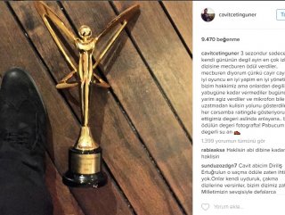 Okan Bayülgen'in bu konuşmasının ardından dizinin oyuncusu Cavit Çetin Güner'den İnstagram'dan tepki geldi. Güner ödülü ayakları altına aldığı fotoğrafı paylaştı.