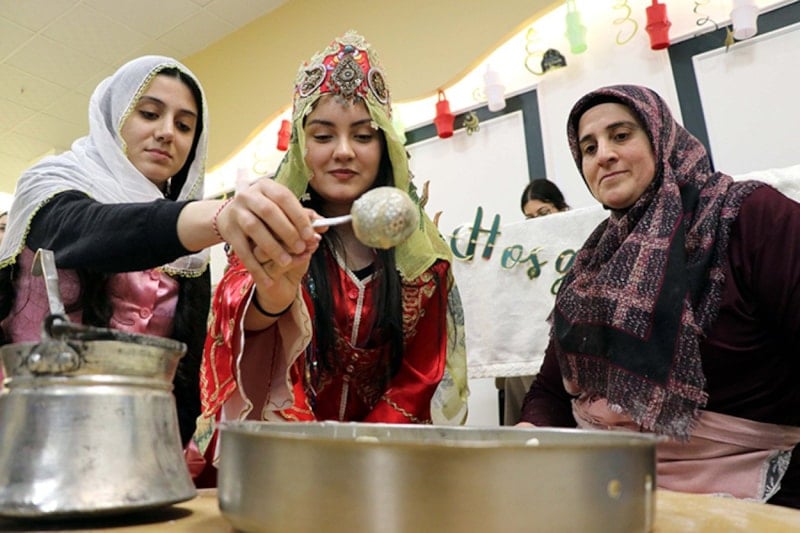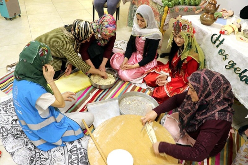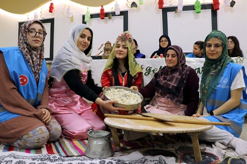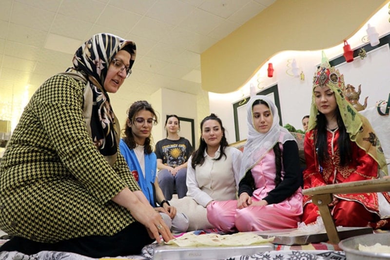 Gençlik ve Spor Bakanlığı yurtlarında kalan üniversiteli kız öğrenciler, Ramazan ayına özel düzenlenen “Ninemin Tarifleri” etkinliklerinde kentin geleneksel yemeklerini uygulamalı olarak öğreniyor.