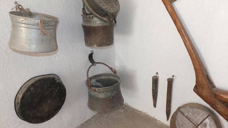 Turan, 25 yıl boyunca yakın akrabalarından toplayarak biriktirdiği, geçmişte kullanılan bakraç, sini, bakır tabak, tırpan ve orak gibi mutfak eşyaları ile tarım aletlerini iki katlı evin birinci katında sergilemeye başladı.
