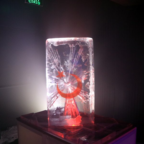 15 Temmuz darbe girişiminde gösterilen direnişi, birlikteliği ve iradeyi belleklerde diri tutmak, şehitleri yad etmek, verilen mücadeleye dikkat çekmek için hazırlanan "Maan-Ice Sergisi", buz malzeme ile üretilen eserleri ziyaretçileriyle buluşturuyor.