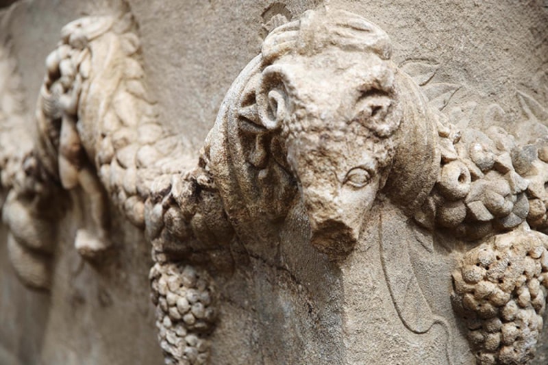 "Yaklaşık 2 bin yıl öncesinin zenginliğini, ihtişamını, gösterişliliğinin hepsini burada görmek mümkün. Bitkiler, özellikle girlandlar çok güzel ve böyle dolu dolu canlı işlenmiş. Köşelerinde koç başları, etrafından kozalak, asma ve zeytin yaprakları, üzüm, nar ve haşhaş gibi meyveler betimlenmiş durumda. Köşelerinde bulunan koç başlarına baktığınızda bile o dönemin zenginliğini ve ihtişamını anlamanız mümkün. Dar kenarlar ve orta kısımlarında bulunan boğa başları, tüm figürleri tamamlayan detaylardan bazıları. Bölgede kazı çalışması devam ediyor. Her kazma bizim için yeni umut, yeni eser ve güzel sonuçlar olabilir."