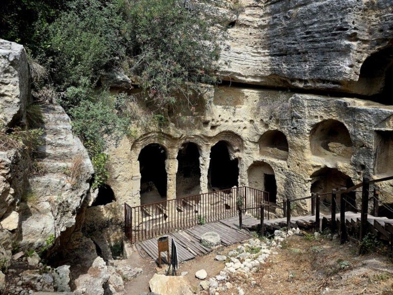 Kaya mezarlarının en geniş ve en ünlülerinden olan Beşikli Mağara'da bölümler halinde 12 mezar bulunuyor.