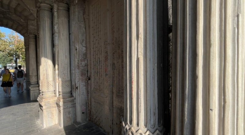 Bu köprü Çırağan Geçidi diye geçiyor. Aslında buna bir zafer takı da diyebiliriz, Osmanlı’nın ihtişamını gösteren. Çırağan Sarayı’na açılan bu kapıya yıllardır yazılar yazılıyor. Bununla ilgili herhangi bir önlem alınmadı.