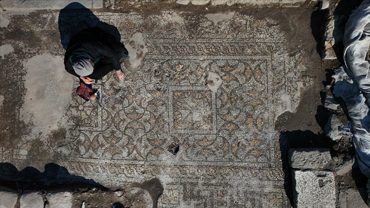 Sezgin, Mozaikli Ev'in avlusundaki havuzda mezar taşı kullanıldığını fark ettiklerini dile getirdi.