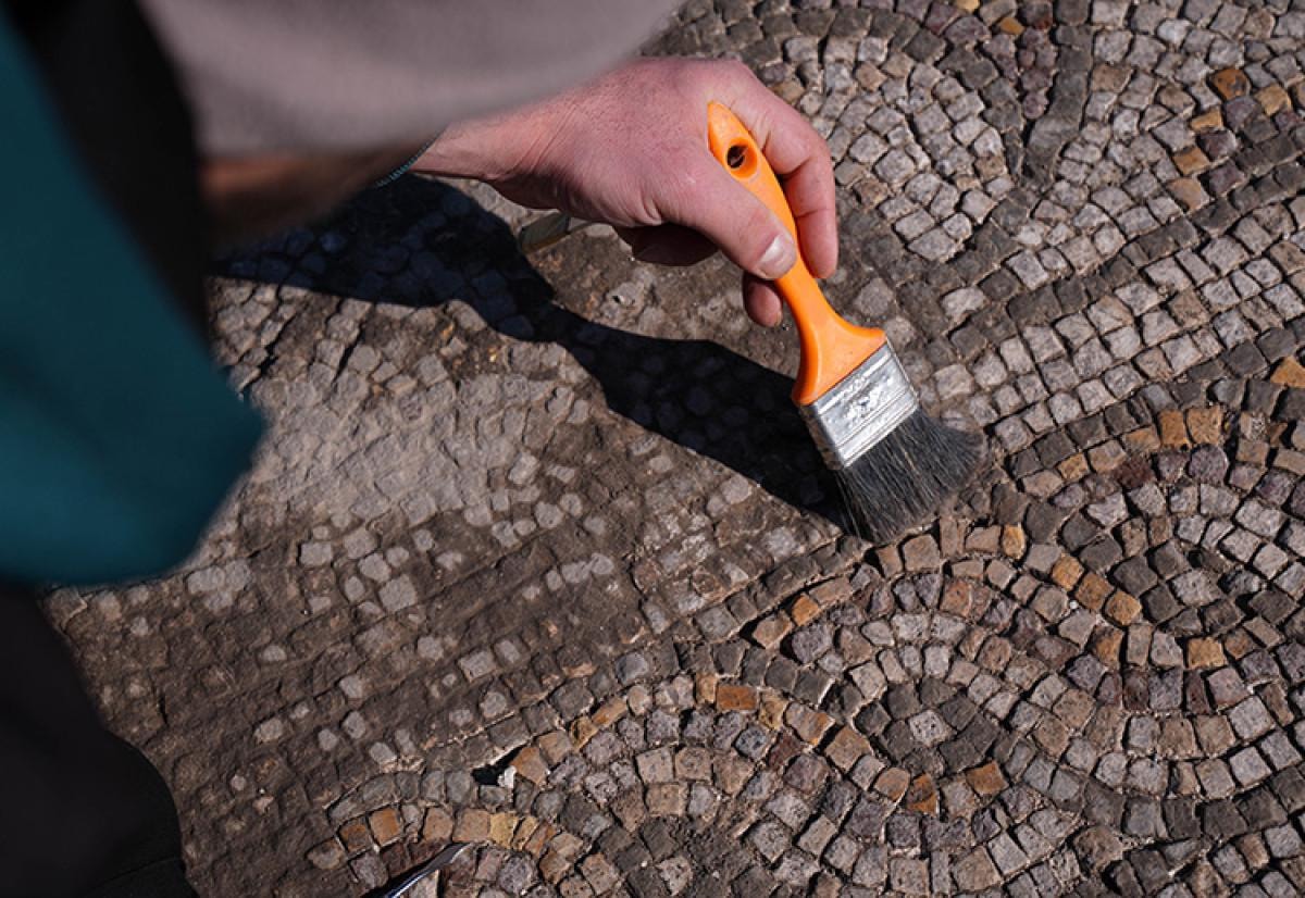 Prof. Dr. Sezgin, Pergamon Antik Kenti'nde birkaç noktada çalışma yürüttüklerini anlatarak, Kızıl Avlu'nun yakınındaki kazılarda Mozaikli Ev olarak adlandırılan büyük bir yapı kompleksinin bulunduğunu ifade etti.