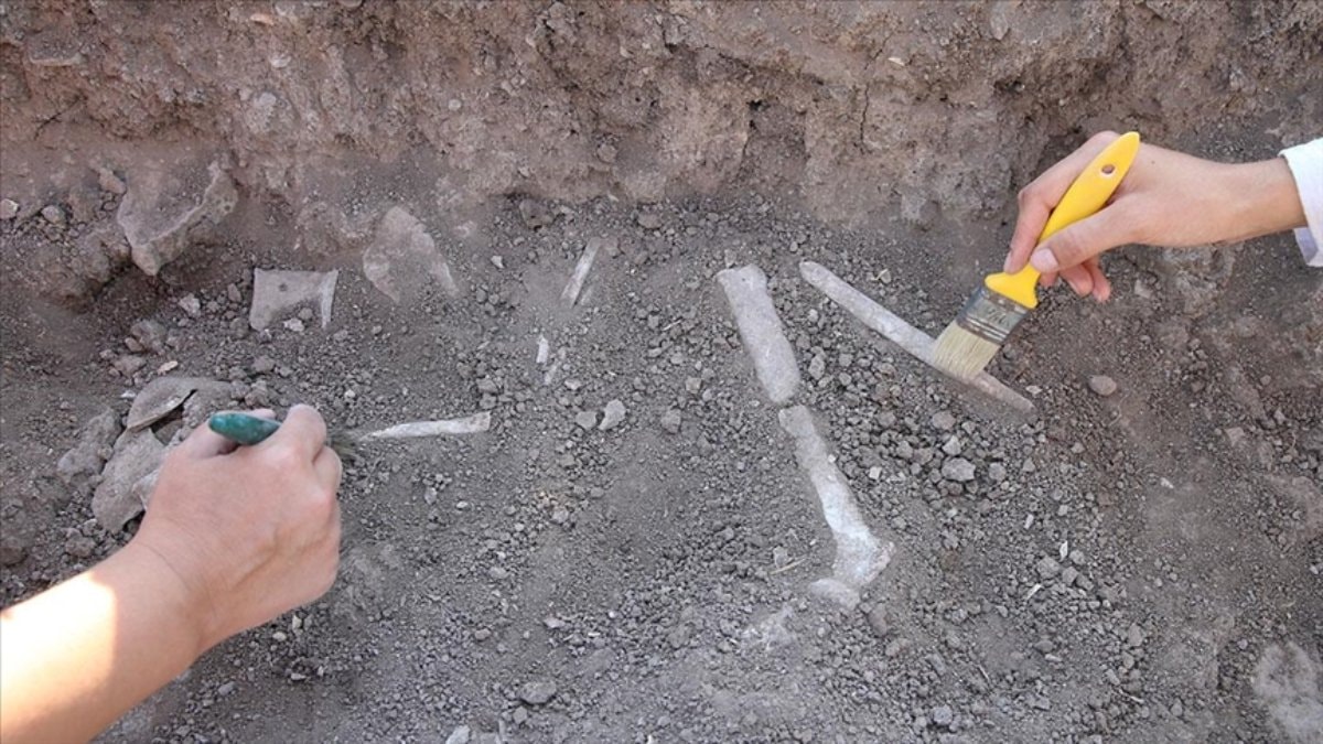 Kazı Başkanı Doç. Dr. Tekin,aynı alanda yürütülen çalışmalarda yaklaşık 10 gün önce biri bebek, diğeri 6-7 yaşlarında olmak üzere iki insan iskeleti bulunduğunu hatırlattı.