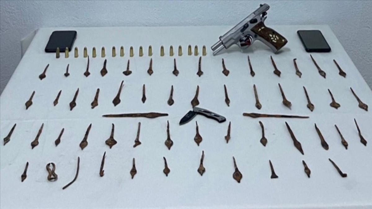 Belirlenen adrese Elbistan İlçe Jandarma Komutanlığı ekipleriyle düzenlenen operasyonda, Roma dönemine ait olduğu değerlendirilen 57 mızrak ucu, bir tabanca ile 17 mermi bulundu.