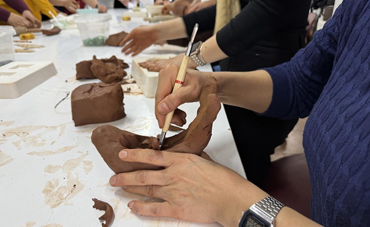 Çamurun ve seramik ürünlerinin ön planda olduğu bölgede, seçmeli cam derslerinde çalışmalar yapıyoruz. AHİKA’nın desteğiyle gerçekleştirdiğimiz AR-GE çalışmaları sayesinde, bölgenin kırmızı çamuruyla çöplerden topladığımız cam atıkları değerlendirebildik. Öğrencilerimize eğitim veriyoruz; camları topluyor, temizliyor ve değirmende öğütüyoruz. Bu işlem sonrasında birkaç santimetre ebadında cam parçaları elde ediyoruz. Cam öğütüldüğü için dokunmakta herhangi bir zarar vermiyor. Çamurla karıştırıp şekil verdikten sonra kurutuyor ve seramik fırınında pişiriyoruz. Çamurda yüzde 80 cam atığı kullandığımızda, yüzeyde daha camsı bir tabaka oluştuğunu gözlemledik. Bu nedenle seramiklerde sır kullanmadan çalışmamız mümkün oldu. Bu, hem ekonomik hem de sürdürülebilir bir yaklaşım ortaya koyuyor. Gelecekte atölye ve işletme sahiplerine eğitimler vererek, yörenin ürün yelpazesinde camı da eklemeyi planlıyoruz.