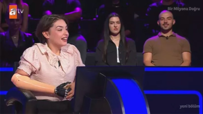 Kenan İmirzalıoğlu'nun sunduğu yarışmanın önceki bölümünde geçtiğimiz yıl kolunu kıyma makinesine kaptırarak biyonik kol kullanmaya başlayan Rabia Birsen Güvercin, 400 bin lira değerindeki soruya doğru yanıt vermiş, 24 yaşındaki Rabia'nın başarısı karşısında tepkisiz kalamayan Kenan İmirzalıoğlu, "Harikasın" diyerek yarışmacıyı alnından öpmüştü.