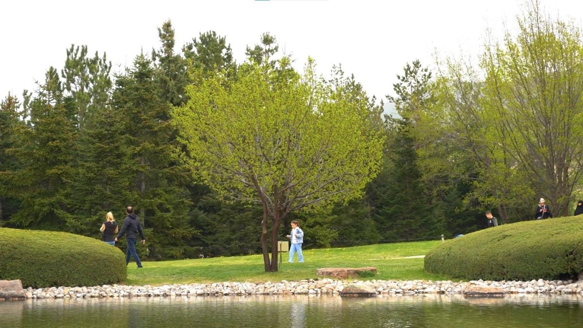 Bu yapay gölde, şelalede bu ağaçların, çiçeklerin arasında güzel güzel zaman geçiririz. İlkbaharın gelmesiyle tabii burası daha da güzelleşti. Farklı farklı ağaçlarımız var.