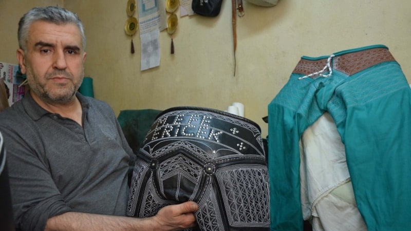 Kispet üretiminde “vidala” adı verilen özel işlenmiş dana derisi kullanan Kozak, her bir ürün için yaklaşık 3 metre deri harcıyor. Ölçüye göre kesilen parçalar, geleneksel yöntemlerle dikiliyor ve bel kısmındaki işlemeler büyük bir titizlikle hazırlanıyor.