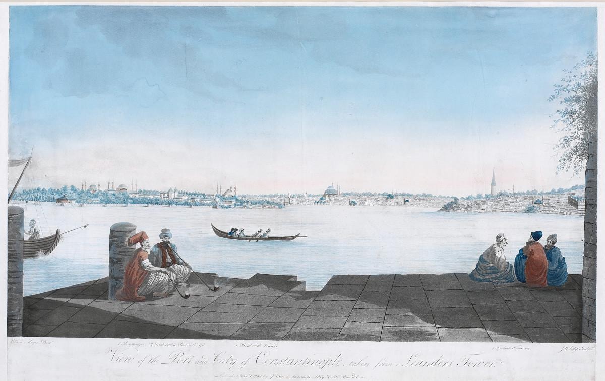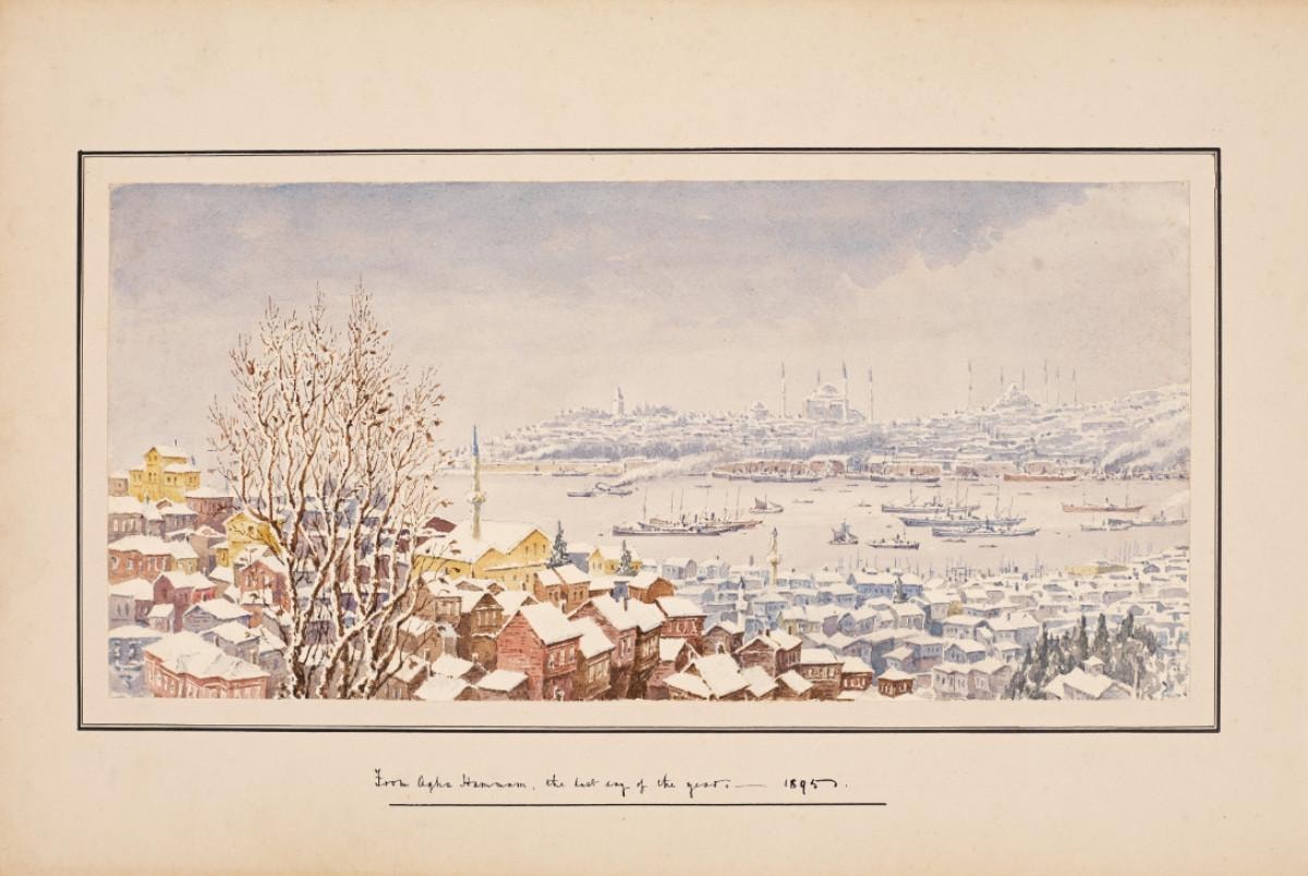Bazı suluboyaları Clara Barthold imzasını taşıyor. Sergide, Mayer’in Kız Kulesi’nden tarihi yarımadaya bakan 1794 tarihli eseri görülebilir.