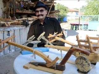 Uşaklı eski kağnı ustası 83 yaşındaki Şerafettin Çelik, yıllar önce teknolojiye yenik düşen mesleğini hediyelik minyatür kağnılar yaparak sürdürüyor.