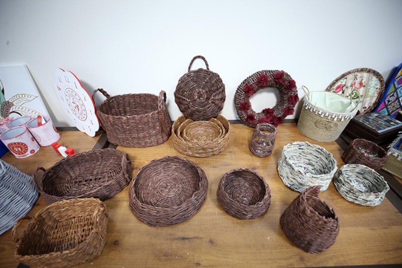 Gazete sayfalarını ince çubuklara dönüştürüp boyadıktan sonra sepetler ve dekoratif ürünler yapıyoruz. Bu ürünler, düşük maliyetle üretildiği halde piyasada 400-500 lira gibi fiyatlarla karşılık buluyor. Bu da geri dönüşümle sanatın nasıl değer yaratabileceğini gözler önüne seriyor.