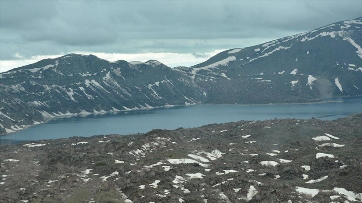 Saha çalışmalarına katılan BEÜ Rektörü Prof. Dr. Necmettin Elmastaş,"Nemrut Jeopark Çalıştayı" kapsamında Nemrut Krater Gölü'nde arazi çalışması yürüttüklerini söyledi.