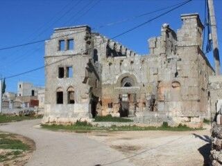 AA, İdlib'in batısında, Hatay ilinin Reyhanlı ilçesine 5 kilometre mesafedeki Harem beldesine bağlı Dürzi köyü olan Kalb Lovze'deki, aynı isimli kilisenin kalıntılarını görüntüledi.
