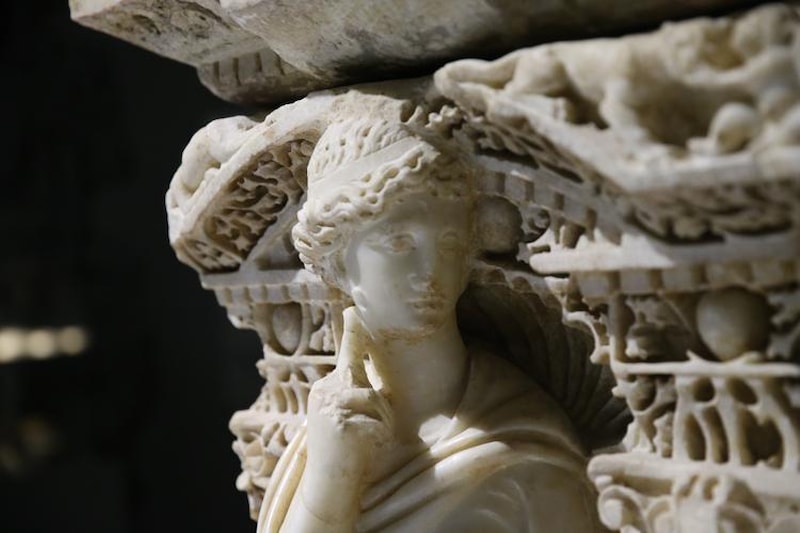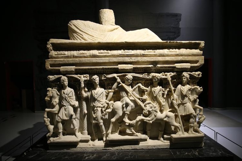 Üzerinde Pan ve Satyr kabartmalarının yanı sıra aslan-boğa mücadelesi ve Eros ile leoparların oyununun işlendiği eser, müzede sergilenen 26 lahit arasında yer alıyor.