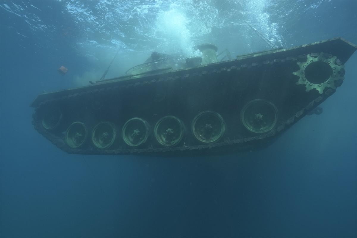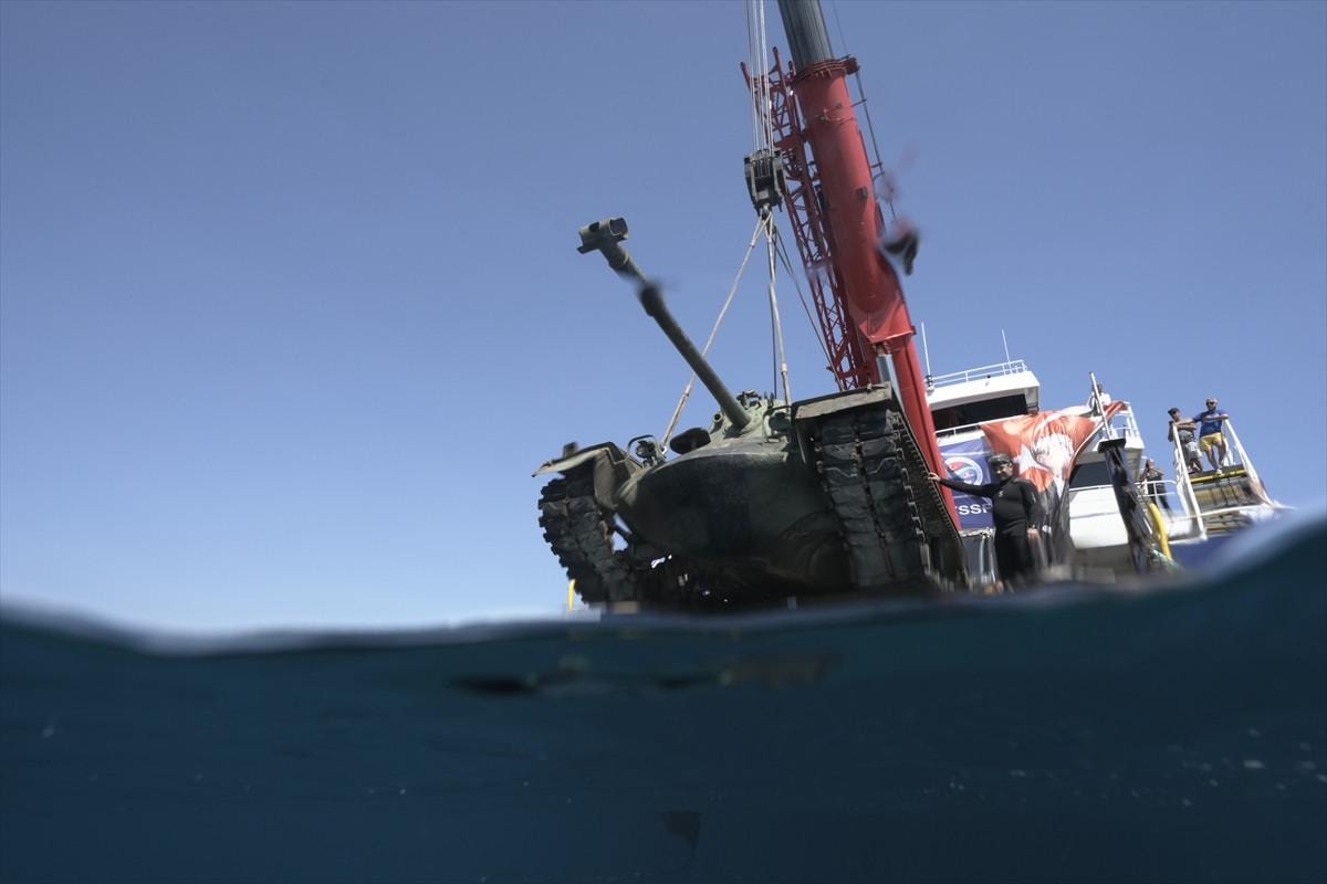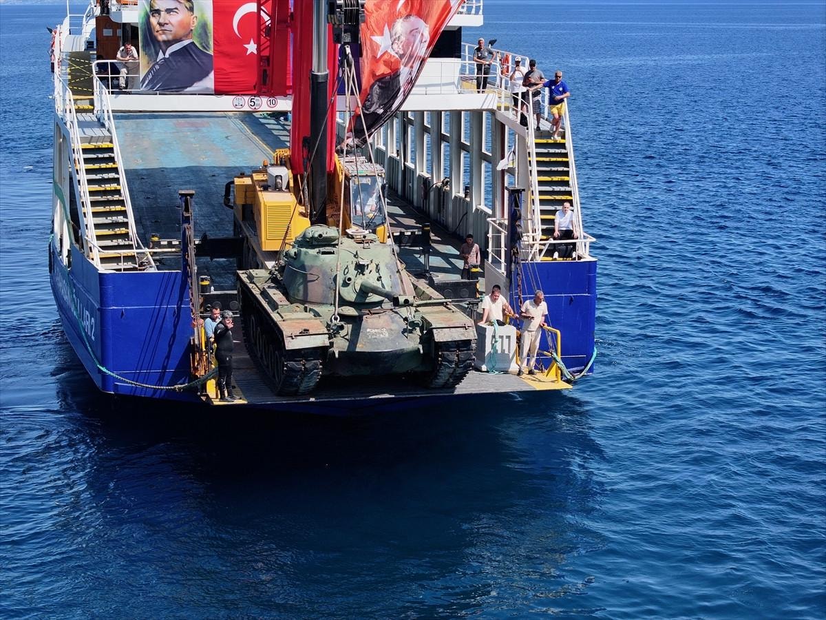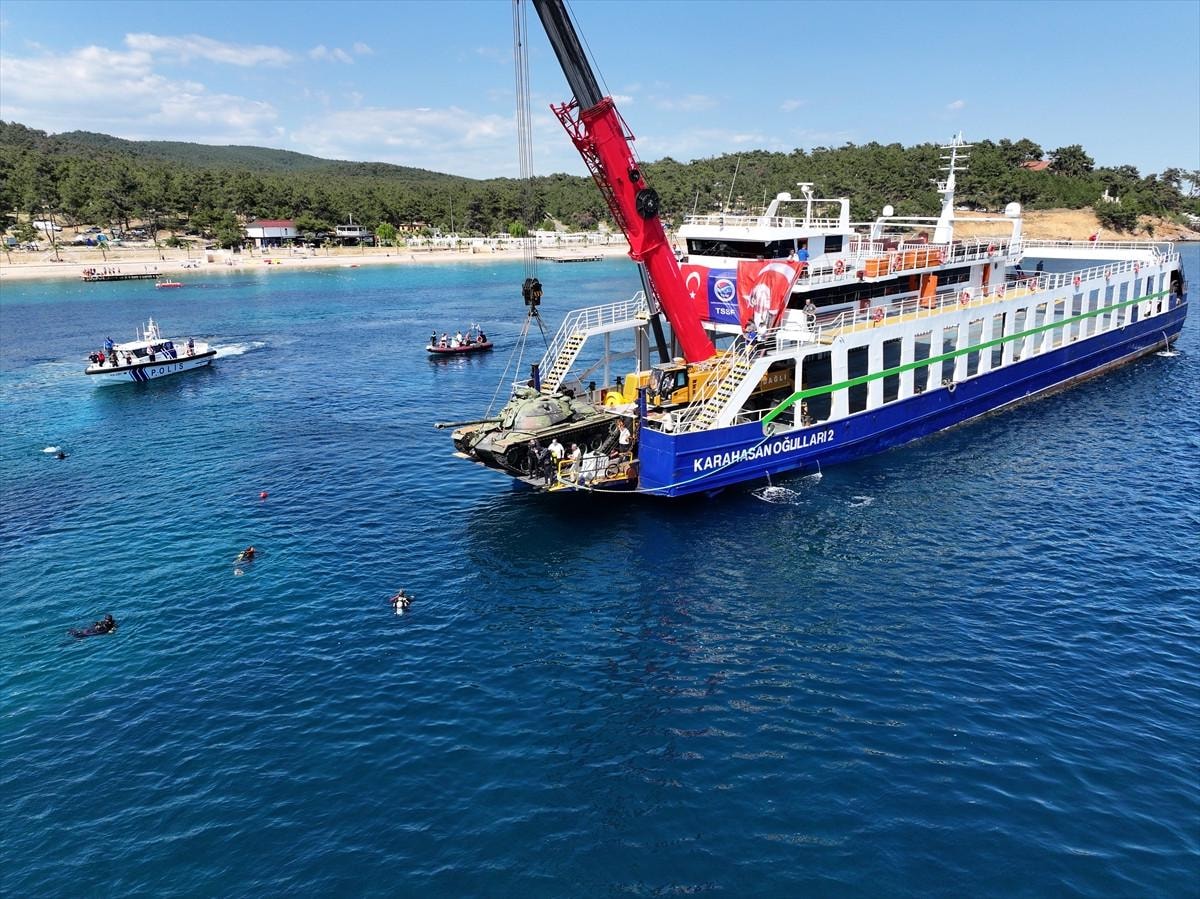 Toplamda 8,5 metre uzunluğunda ve 45 ton ağırlığındaki bu zırhlı araç, kıyıdan feribotla taşındıktan sonra, Gökçetepe sahilinin yaklaşık 100 metre açığında, denizin 10 metre altına vinç yardımıyla dikkatle yerleştirildi.