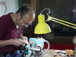 O ustalardan biri de 38 yıldan bu yana sedef kakma, oymacılık ve telkari ustalığı yapan Mehmet Ağca.