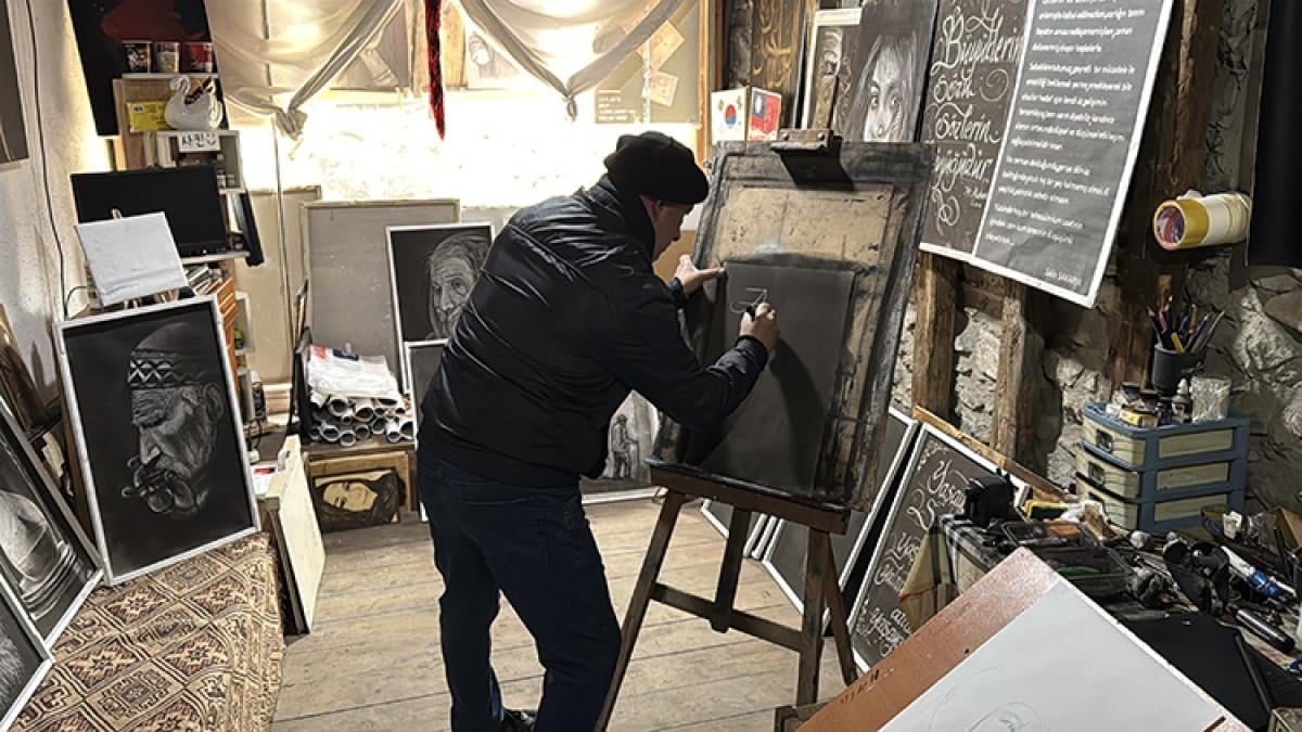 ÖNCE KAHVEYLE, SONRA DA SİLGİYLE RESME BAŞLADI