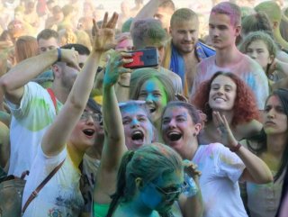 Uluslararası Gençlik Günü kapsamında, Novi Sad Avrupa Gençlik Başkenti (OPENS) tarafından Sırbistan Novi Sad'daki Tuna Nehri kıyısında düzenlenen renk festivaline yüzlerce genç katıldı. Festivalde katılımcılar renkli boya toplarını birbirine atarak eğlendi.