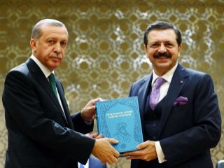 Ziyaret esnasında TOBB adına Hisarcıklıoğlu her yıl bir kültür eserinin orjinal nüshalarının tıpkıbasımını yaptıklarını hatırlatarak, bu kapsamda Erdoğan'a Dede Korkut Hikayeleri'nin orjinal nüshalarından oluşan bir eser hediye edildi.
