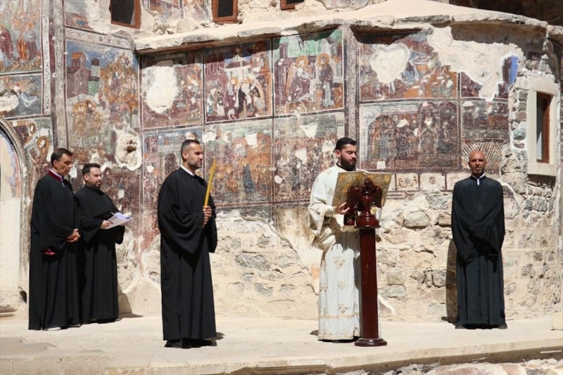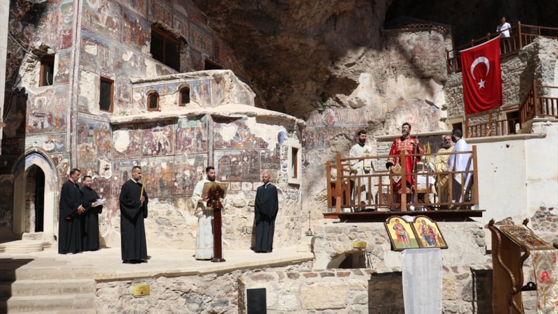 Trabzon’un Maçka ilçesinde, Karadağ’ın Altındere Vadisi’ne bakan Sümela Manastırı’nda ayin gerçekleştirildi.