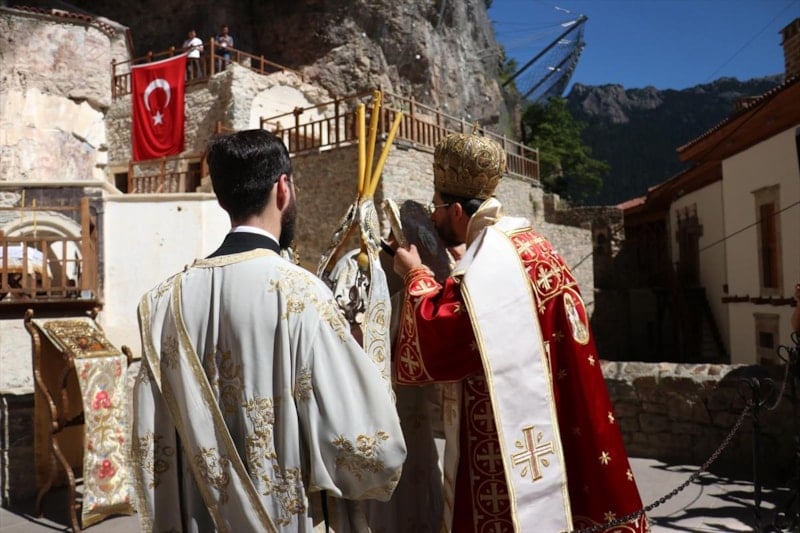 Türkiye’nin önemli inanç merkezlerinden Sümela Manastırı’nda 12’nci kez düzenlenen ayini, Patrik Pavlos Sofianopoulos yönetti.