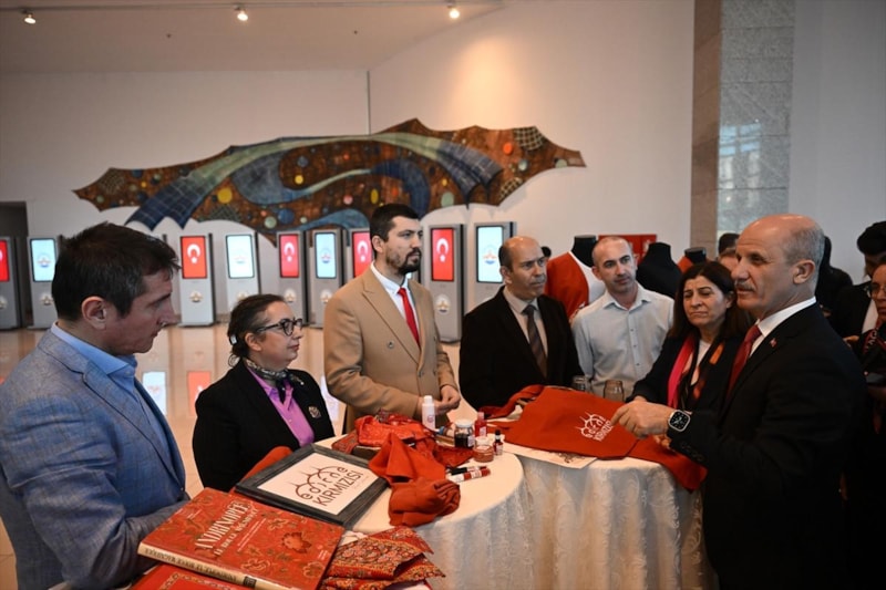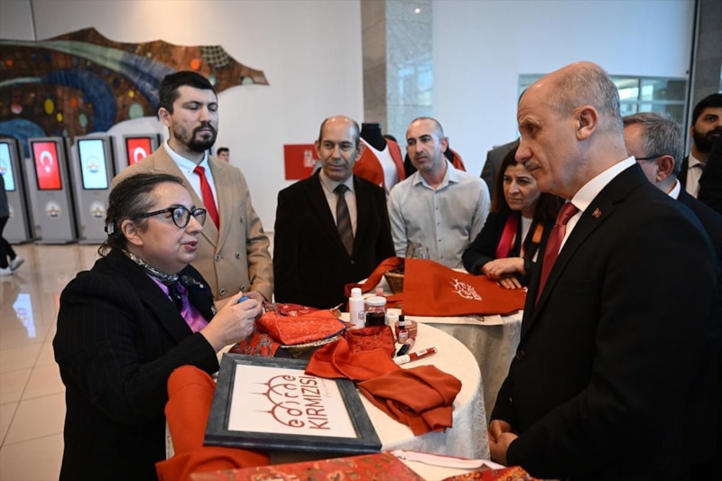 Formülü casusluk faaliyetleriyle yurt dışına taşınması nedeniyle "efsane renk" olarak bilinen Edirne kırmızısı standını da ziyaret eden Özvar, renkle ilgili çalışmalar yapan akademisyenlerden bilgi aldı, ürün örneklerini inceledi.