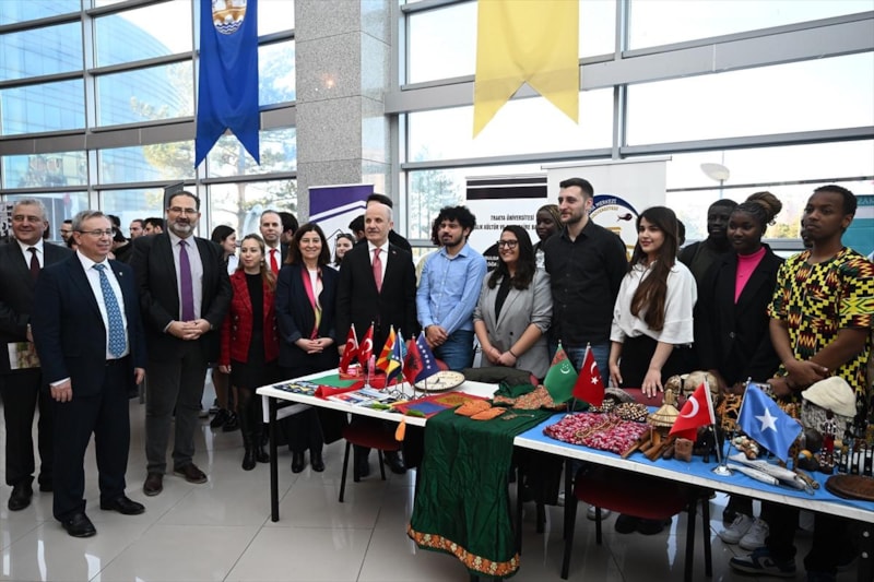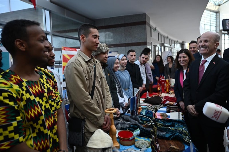 Ardından üniversitenin öğrenci topluluklarının stantlarını gezerek bilgi alan Özvar'a, bir öğrenci tarafından Kazakistan'ın milli kıyafeti giydirildi.