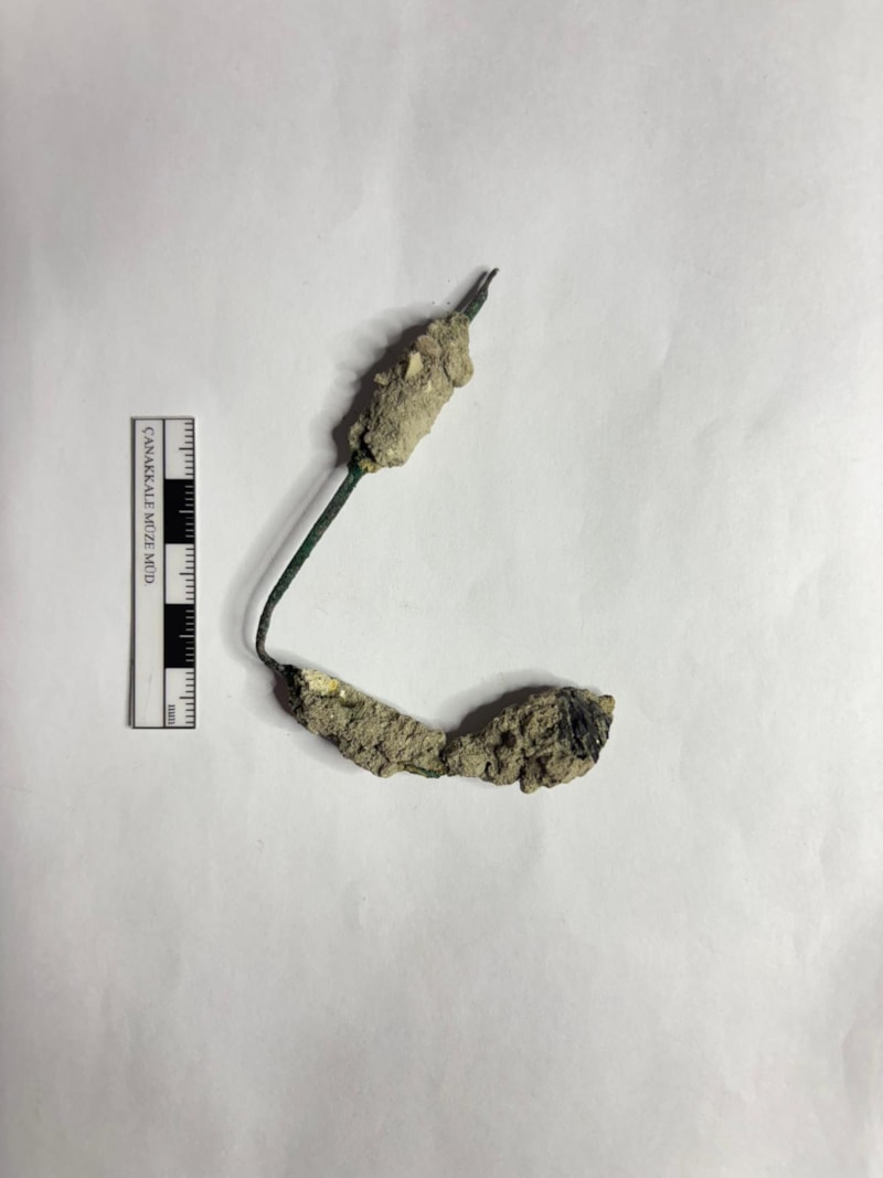'Geleceğe Miras' projesi kapsamında sürdürülen çalışmalarda, Troya uygarlığının Erken Tunç Çağı'na (M.Ö. 2.500) ait altın bir halkalı broş gün yüzüne çıkarıldı.