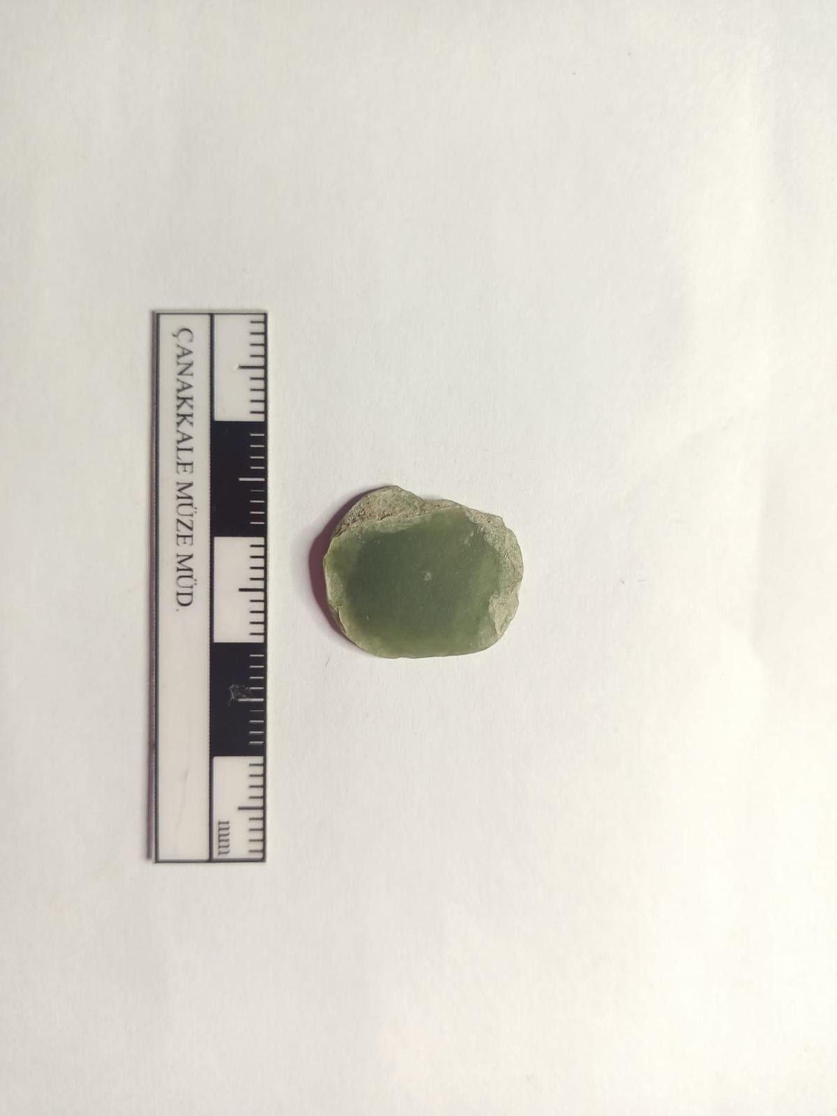 Aynı konteksten çıkan yeşim taşı, hazine buluntuları içinde son derece ender görülen bir örnek olarak öne çıkıyor.