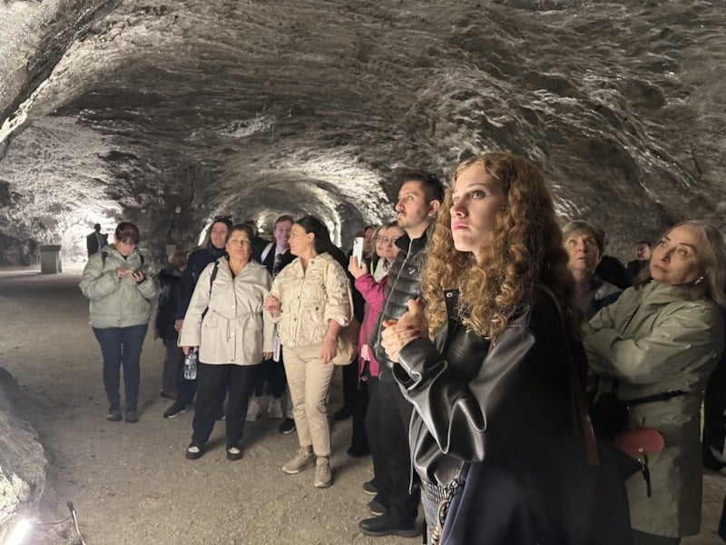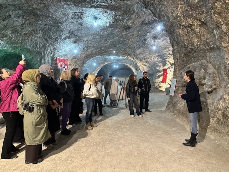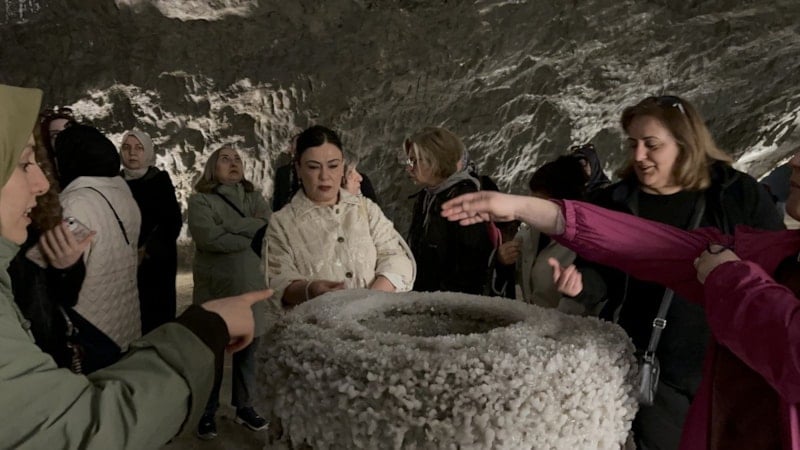Misafirler, yerin yaklaşık 150 metre altında bulunan ve dünyanın en büyük tuz mağaralarından biri olarak bilinen Çankırı Tuz Mağarası’nı gezdi.