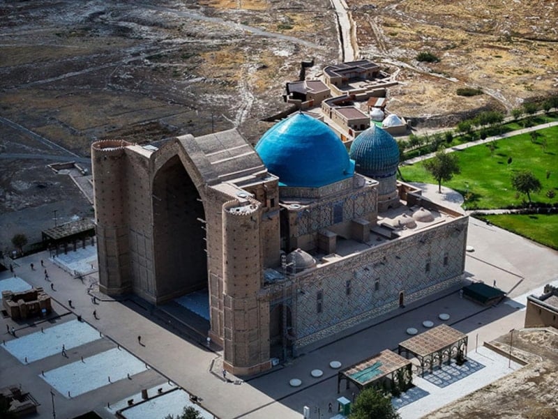 Kazakistan'ın UNESCO Dünya Mirası Listesi'ne alınan ilk tarihi eseri olan ve 14. yüzyılda Emir Timur tarafından inşa ettirilen Yesevi Türbesi de şehrin görkemli yapılarının başında geliyor. Eser, 1993'te başlayan restorasyonla Türkiye tarafından yenilendi.