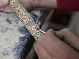 Bitlis'in Ahlat ilçesinde baston ustası Refa Gökbulak'ın yaptığı; Selçuklu yıldızı, lale ve kilim motifi, ebru, rumi ve tezhipli ürünler, ilgi çekiyor.
