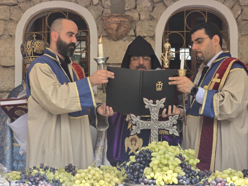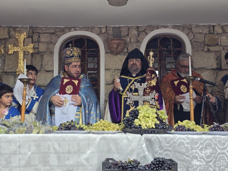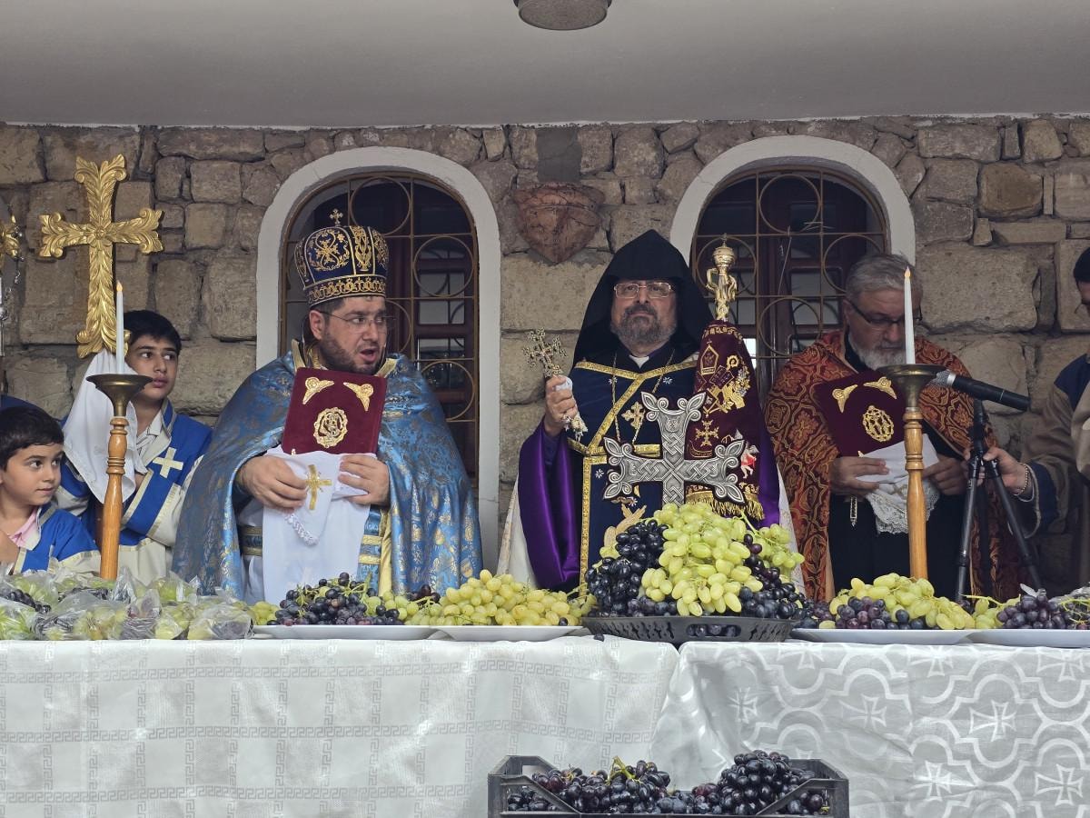 Bağ bozumunun ardından üzümlerini kilise bahçesine getiren çiftçiler için yılın bereketli geçmesi adına dualar okundu.